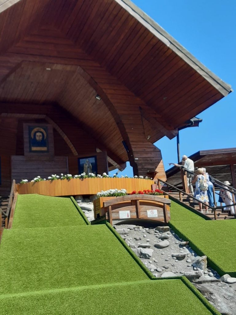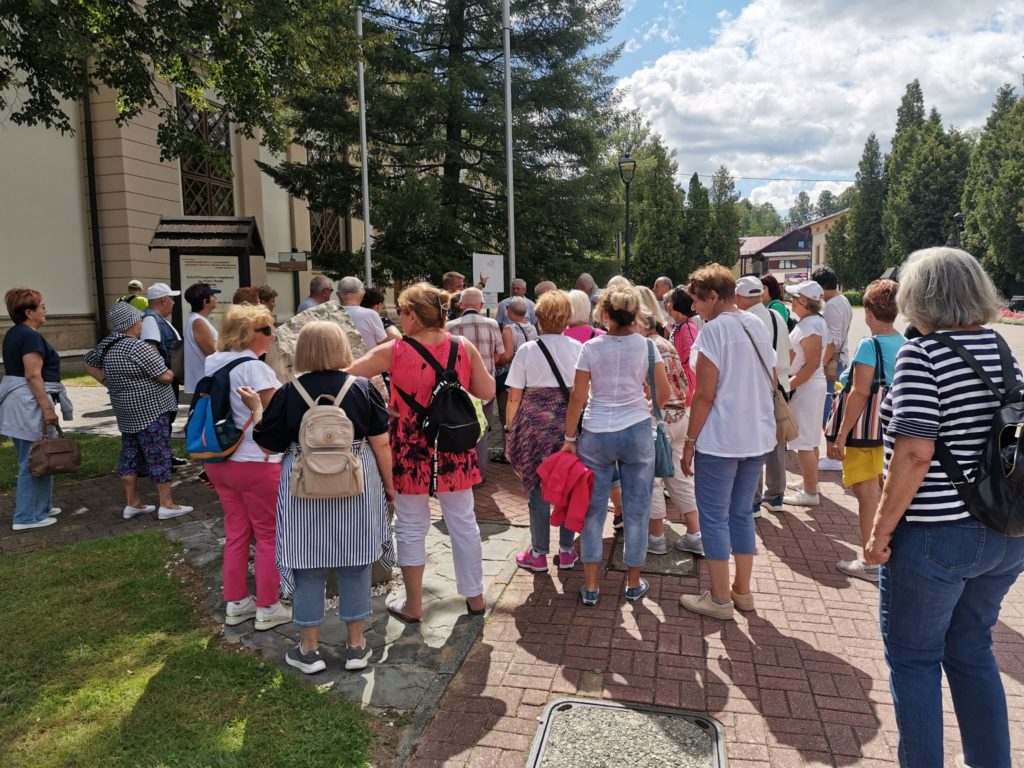 W drodze powrotnej pojechali do Ludźmierza by zwiedzić Sanktuarium Matki Bożej Królowej Podhala i podziwiać malowniczy ogród różańcowy .